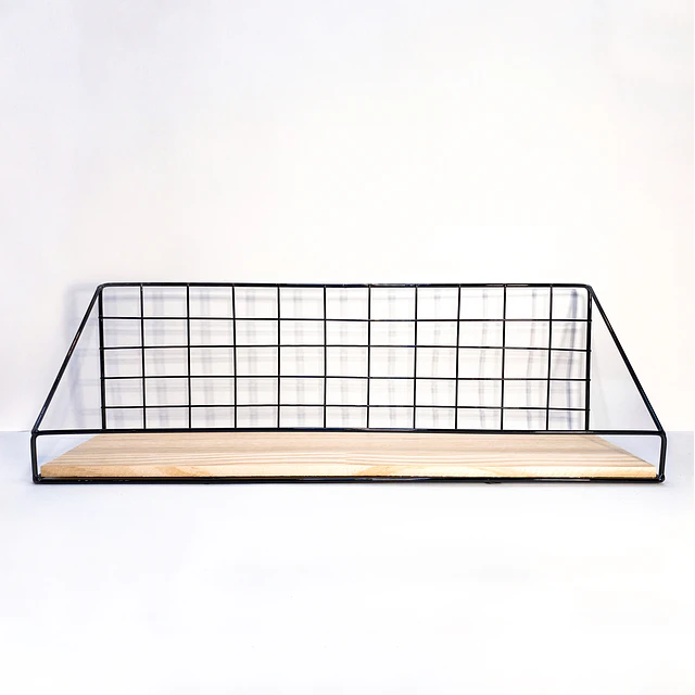 Repisa con estructura metálica y base de madera color natural